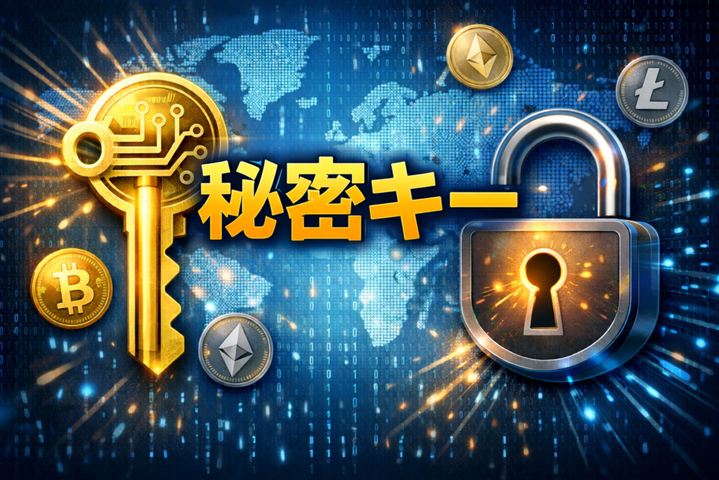 仮想通貨の世界では、資産の管理に「公開鍵」と「秘密鍵」という2種類のカギを使います。公開鍵は受け取り用の情報(アドレスの元)で、他人に教えても問題ありません。一方、秘密鍵は資産を送ったり、操作したりするための本人確認に使う情報で、これが漏れると資産を盗まれる可能性があります。